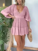 TIKTOK 2024 WOMEN'S LACE CROCHET ROMPER DRESS WITH BUILT-IN SHORTS(50 % OFF🔥)