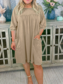 This dress boasts a relaxed, flowy fit that flatters all body types, while the babydoll drop cut adds a touch of whimsy and femininity. Designed for both comfort and convenience, it features exposed front pockets, perfect for storing your essentials while on the go.